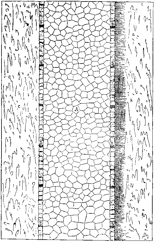 D, Sono le fibule, lequali aperte, cioè diuiſe l'una dall'altra, & legate al contrario, cioè una nella parte di dentro, e l'altra nellaparte di fuori; una ſopra, e l'altra ſotto delle traui groſse due piedi, che faceuano la larghezza del ponte; rendeuano tanto grande la fermezza dell'opera, che quanto era maggiore la uiolenza dell'acqua, e quanto più era carico il ponte, tanto più ella ſi uniua, e ſi fermaua.